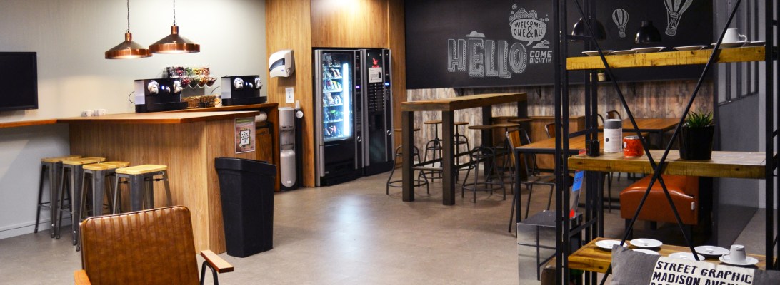 – arrivées d’eau des machines à café, fontaine et distributeurs- faux plafond et sol technique démontables → accès aux installations existantes à tout moment