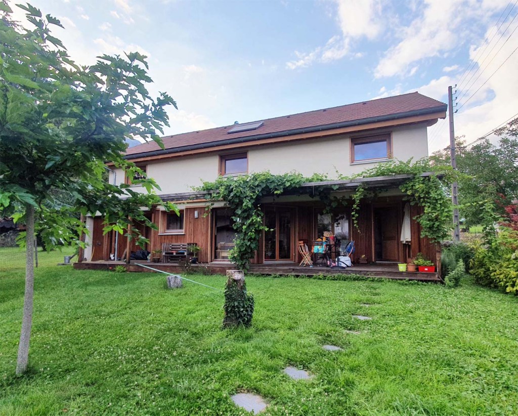 Le mode constructif est réalisé en structure bois avec remplissage de blocs de chanvre. Cette maison offre de très belles performances thermiques en hiver mais aussi en été grâce aux matériaux isolants employés, à son exposition et sa compacité.