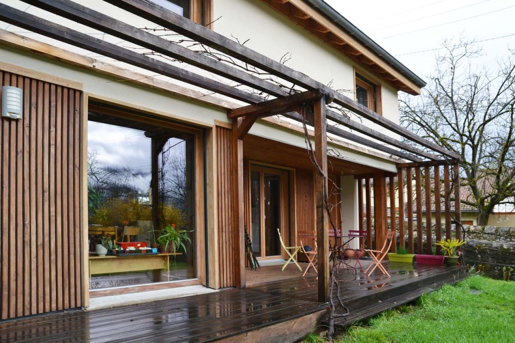 La pergola bois végétalisée en été permet de limiter les apports solaires et créer un espace de fraîcheur. En hiver, les vignes perdent les feuilles laissant passer le soleil pour chauffer l’intérieur.